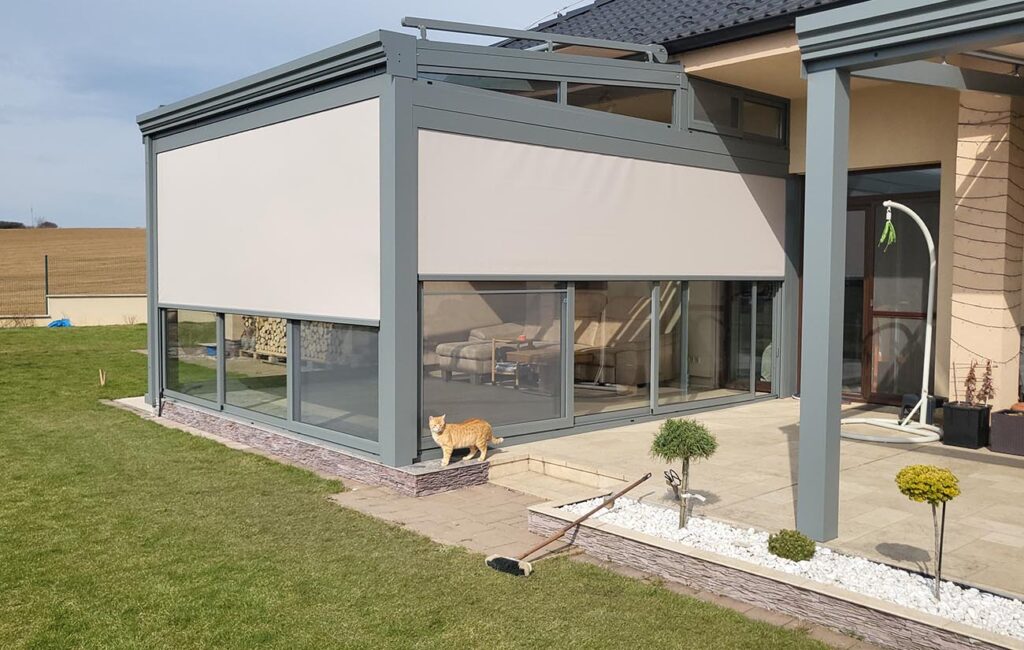 Screenové rolety slúžia aj ako ochrana pre terasy, pergoly či zimné záhrady – chránia pred nepriaznivým počasím aj hmyzom a nečistotami.